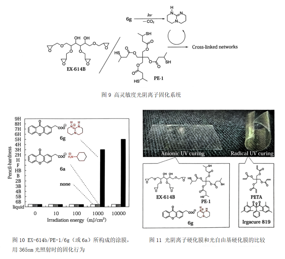 虽然以光化学的方式自由地产生期望的碱基是理想的,但如上所述,此前几乎都是脂肪族1级、2级胺等弱碱基。为了提高光阴离子硬化材料的灵敏度,通过光化学方式生成强碱基,提高碱基催化反应效率也很重要。
