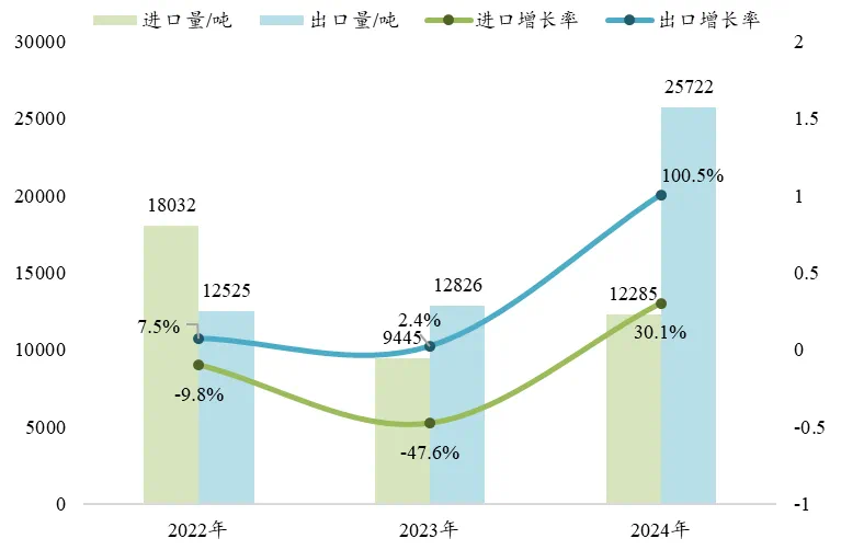 环氧树脂出口量迎来翻倍增长,出口增长率高达100.5%。